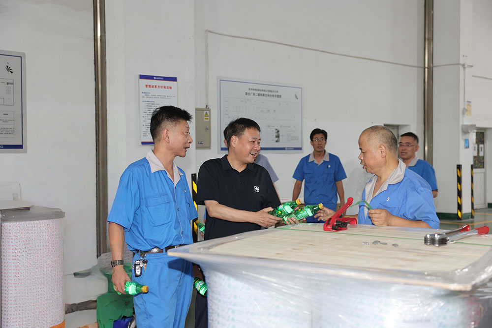 在民丰特纸党委书记、总经理曹继华陪同下,孟春华先后来到各纸机生产现场,为员工们送上了清凉饮料,对他们不畏高温、忠于职守、辛勤工作表示感谢,并叮嘱大家注意劳逸结合,切实做好防暑降温工作,确保安全度夏。