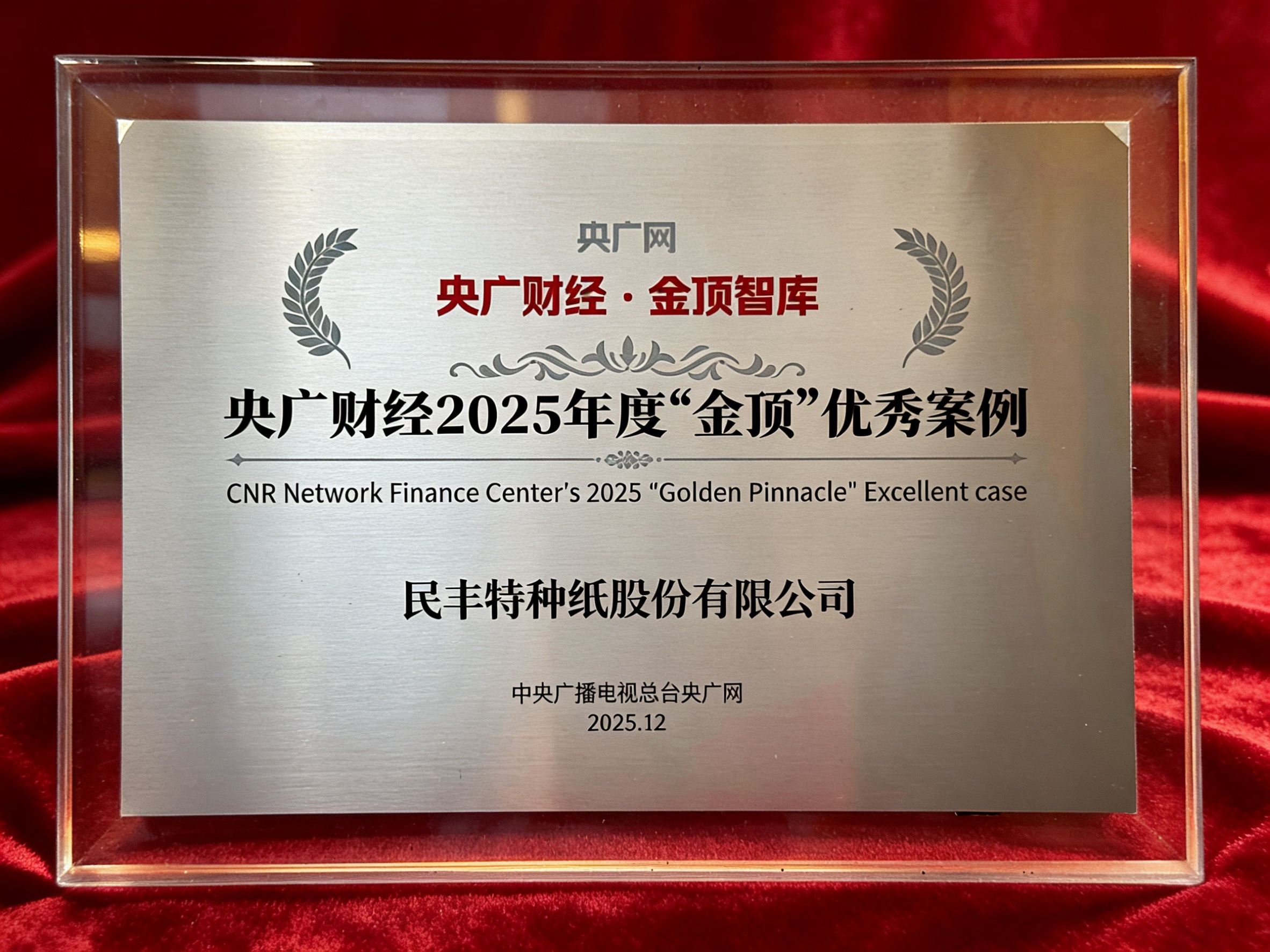 喜 讯!民丰特纸入选央广财经2025年度“金顶”优秀案例